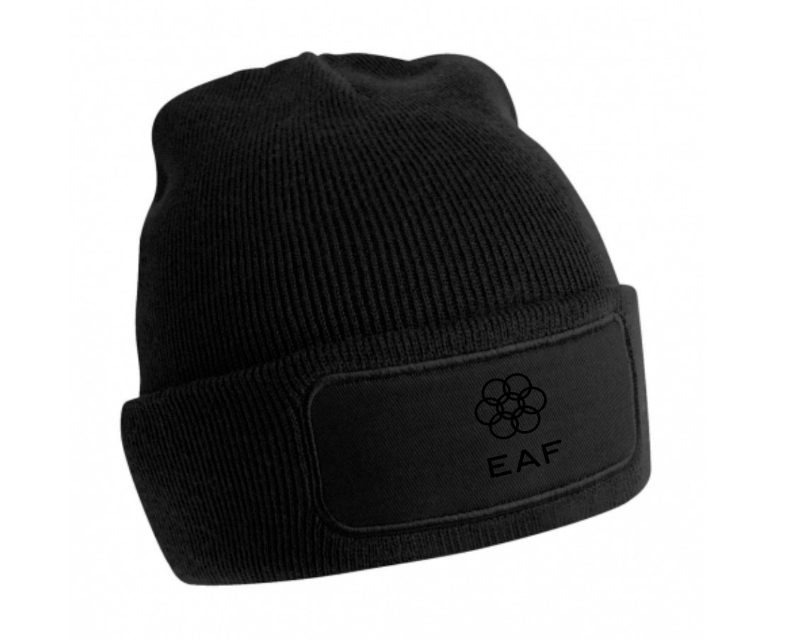 Double Layer Knit Beanie/ Winter Hat with cotton twill patch on the front.
